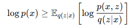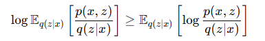 - 젠센 부등식에 의해 로그 우도의 하한을 다음처럼 정의할 수 있습니다.
