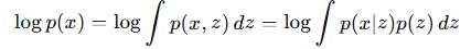 - 로그 우도를 최대화해야 하지만 다음의 형태는 적분 계산이 불가능합니다.