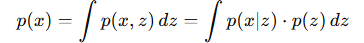 - z 가 연속형 실수 벡터이므로 적분하여 오로지 x 의 확률을 얻을 수 있습니다: marginalization
