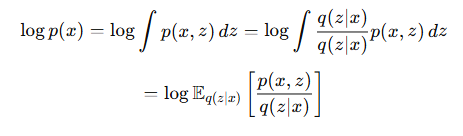 - 간단한 분포 q(z|x)를 도입합니다. 이때 q(z|x)f(z)를 z에 대해 적분하는 것은, q(z|x)라는 확률 분포를 따르는 f(z)의 기댓값을 의미합니다.